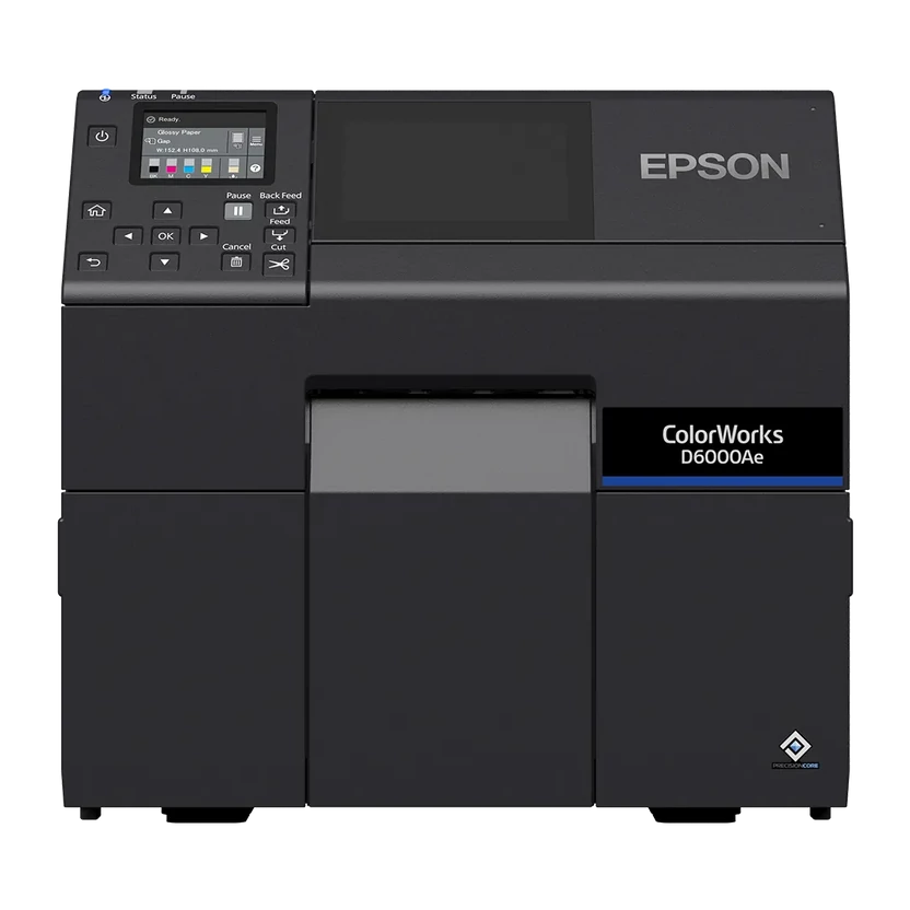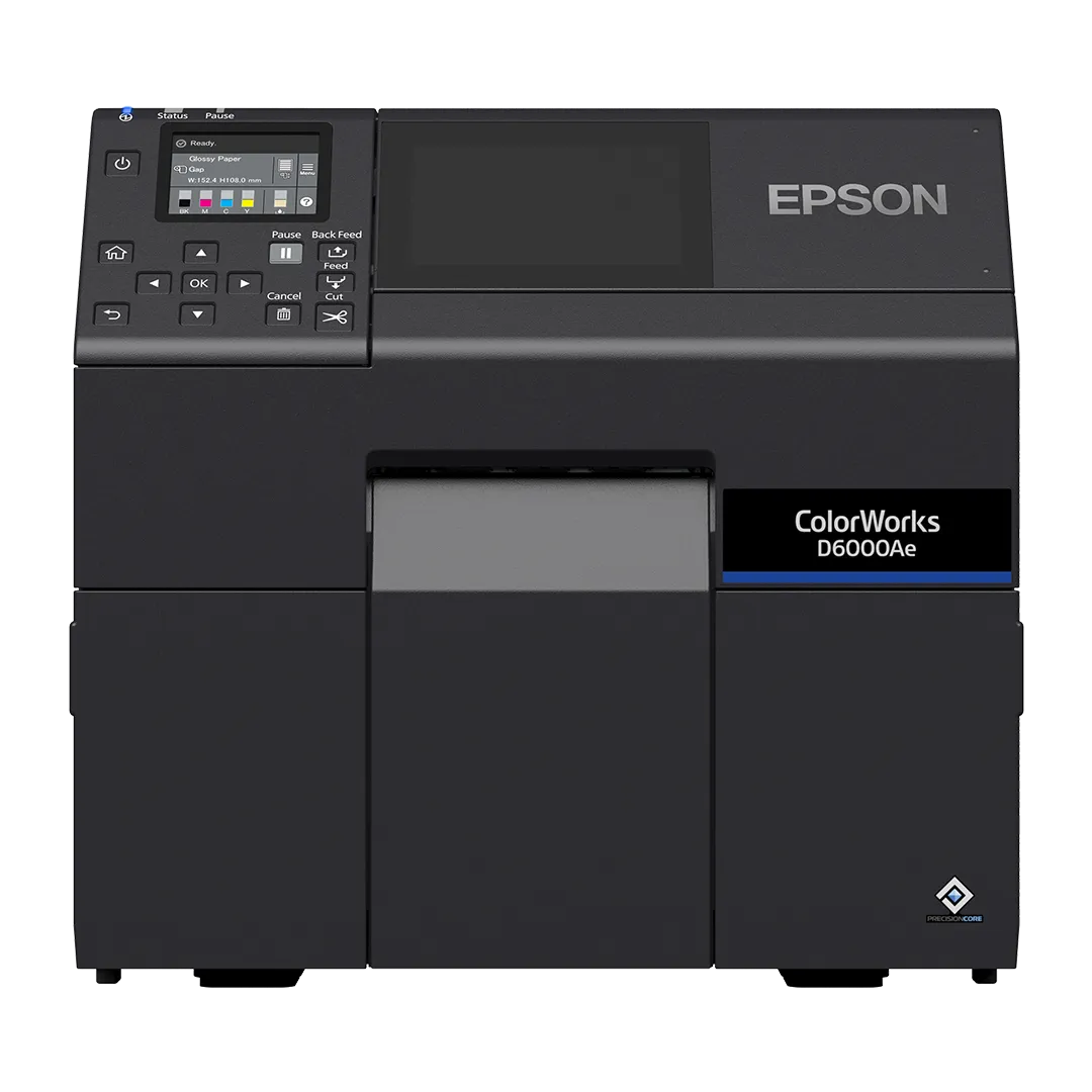 Az Epson ColorWorks D6000Ae modell beépített automata vágóegységgel rendelkezik, amelyhez rendkívül gyors, akár 119 mm/s nyomtatási sebesség társul, így ideális választás kis- és közepes tételszámú gyártáshoz. A könnyű kezelésről a 2,7 colos színes LCD kijelző és a teljesen elölről végezhető karbantartás gondoskodik, így a készülék fal mellé vagy szűkebb helyekre is beépíthető. A nyomtató zökkenőmentesen illeszkedik Windows, Linux és MacOS rendszerekbe, a közvetlen SAP-támogatás és a ZPL II kompatibilitás pedig lehetővé teszi a meglévő rendszerek (BarTender, NiceLabel) azonnali átállását az Epson színes technológiájára.